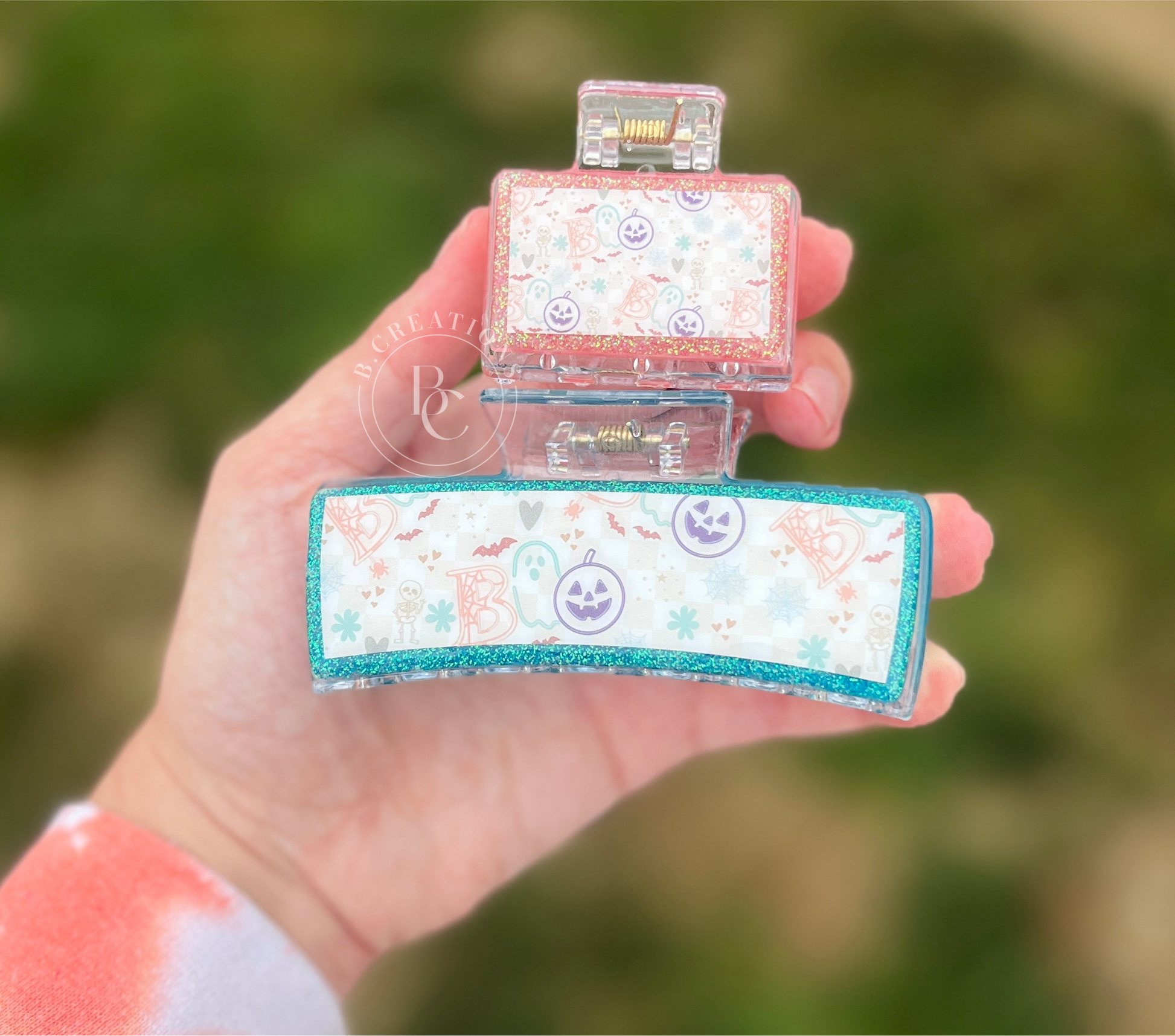 Add the perfect pop of sparkle to your hairstyle with our glittered claw clips! Available in both 2-inch and 4-inch sizes, these clips are designed to hold your hair securely while showing off your style. Each clip is coated in dazzling glitter and finished with a high-quality printed vinyl design, making it as eye-catching as it is functional.