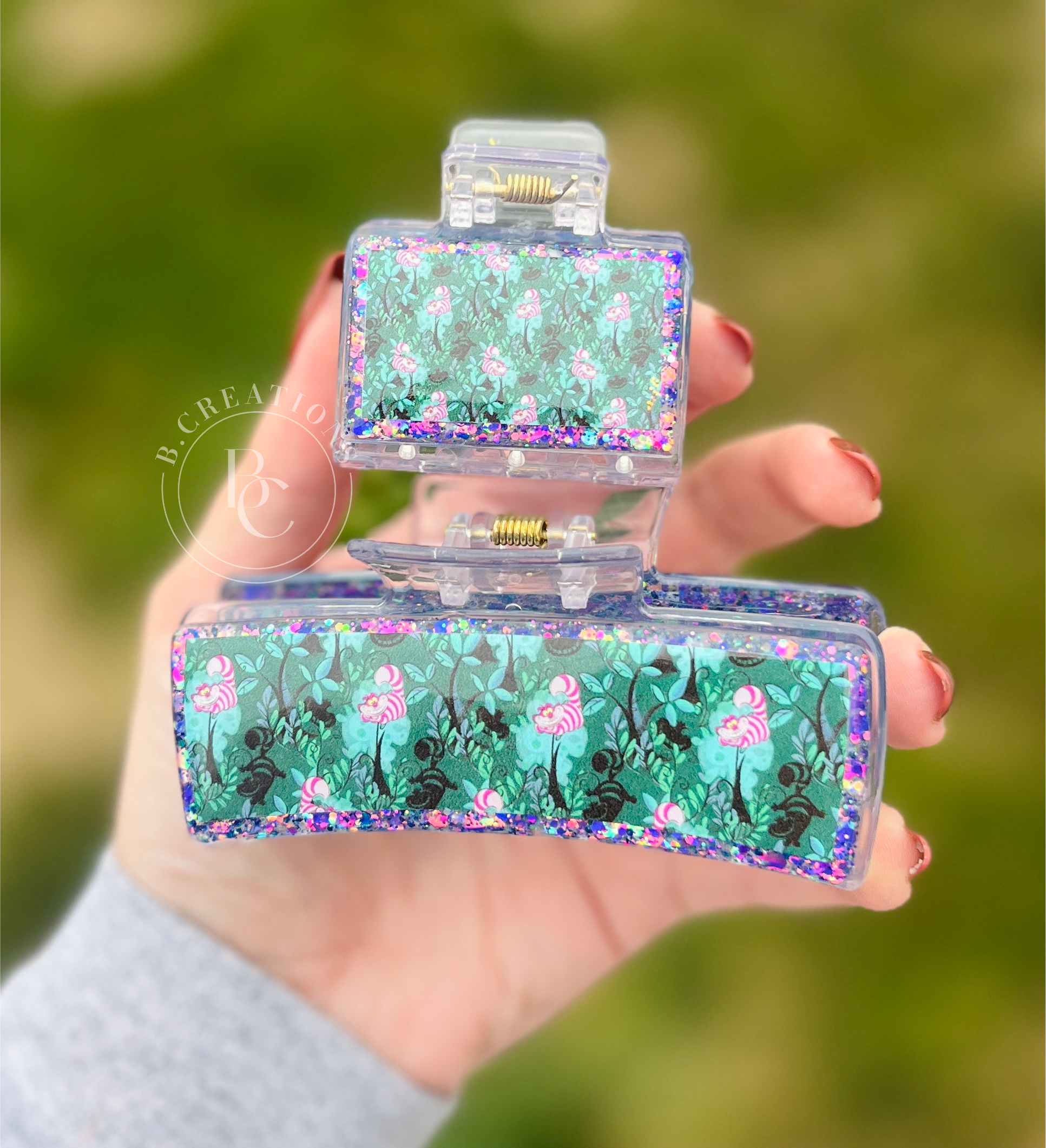Add the perfect pop of sparkle to your hairstyle with our glittered claw clips! Available in both 2-inch and 4-inch sizes, these clips are designed to hold your hair securely while showing off your style. Each clip is coated in dazzling glitter and finished with a high-quality printed vinyl design, making it as eye-catching as it is functional.