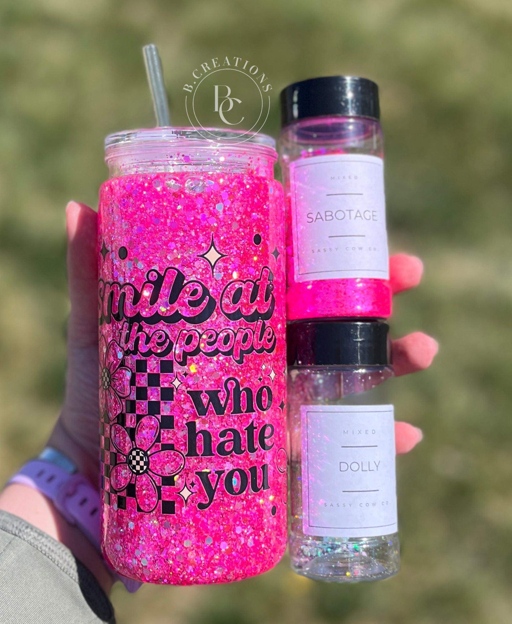 This listing is if you are interested in creating a custom snow globe tumbler. These are made on Tiktok live. I go live on Saturday and Sunday each week. This includes the tumbler of choice, solution of choice, glitter of your choice, and wrap/design of your choice.