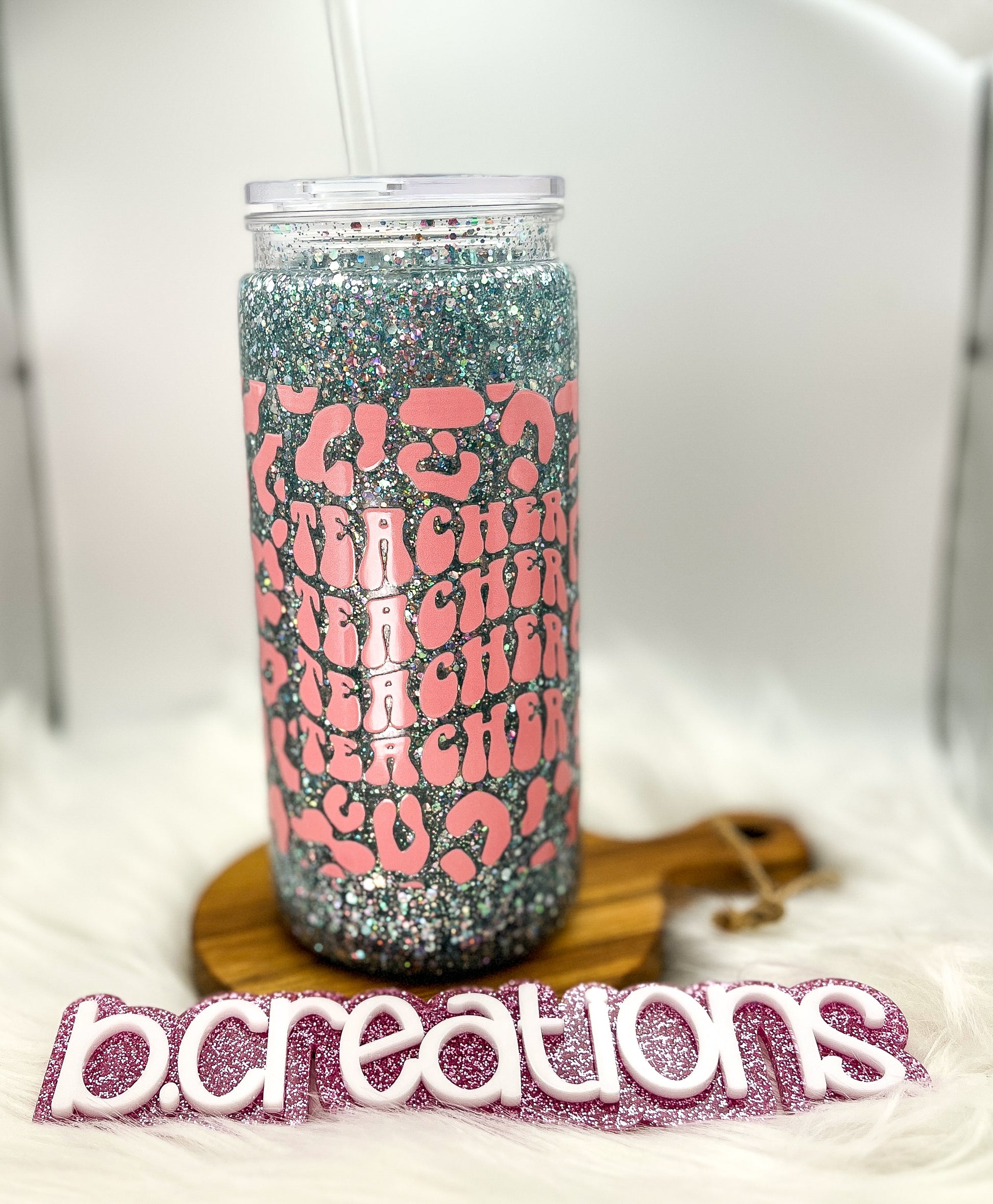 Leopard Teacher Snow Globe tumbler, 20 oz tumbler, Snow Globe Glitter Tumbler