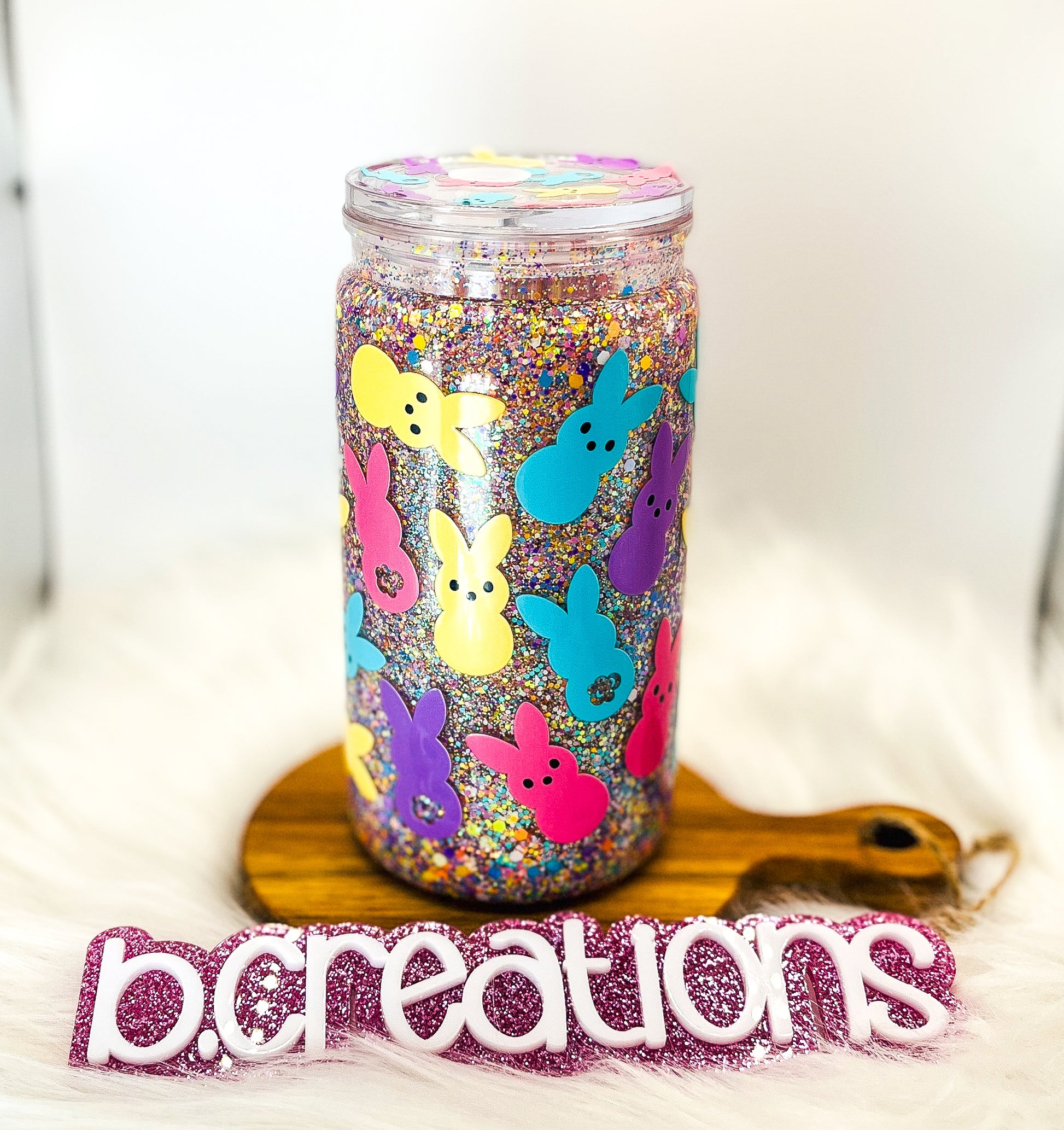 Peeps, Easter Snow Globe tumbler, 16 oz tumbler, Snow Globe Glitter Tumbler
