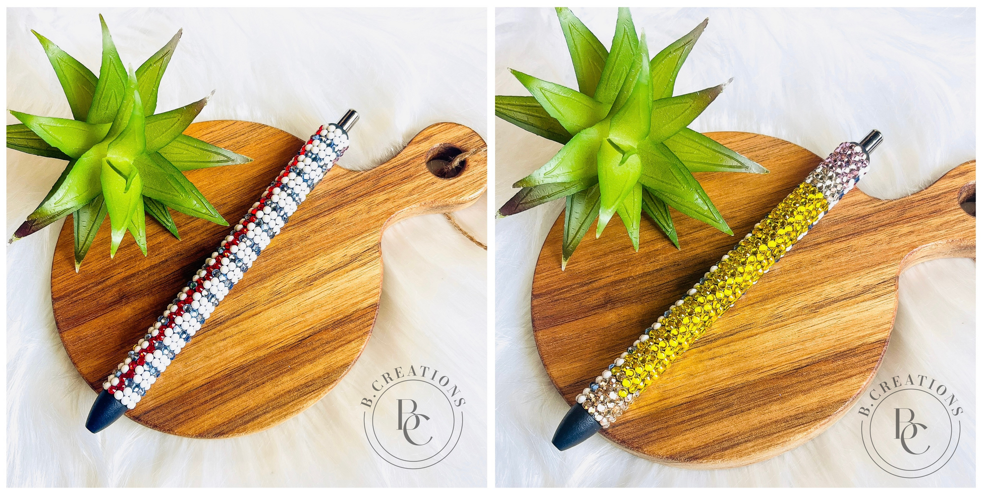 The double sided rhinestone pen would make the perfect teacher gift! One side looks like a pencil, the other side looks like a piece of lined paper. This pen is made with glass rhinestones that make it SPARKLE!