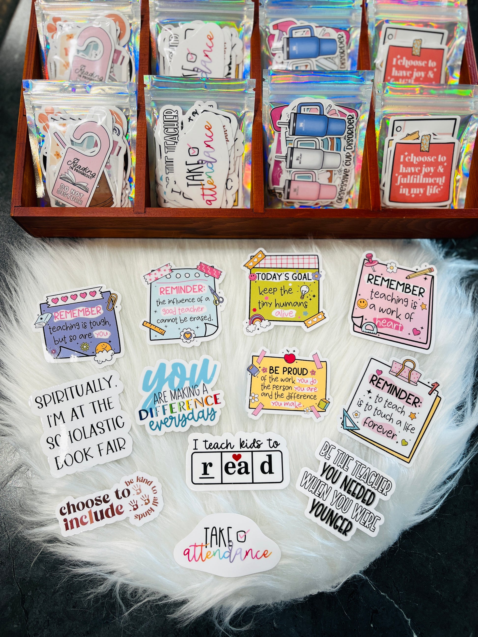 Calling all teachers or if you know a teacher, this sticker pack is perfect! These are fun stickers you can put on any reading device, book, notebook, laptop, or anywhere you want to show them off!